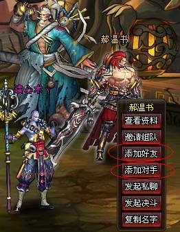 漫漫除魔长路,一人上路不免寂寞孤独,老传奇成长之路广交好友让玩家在游戏过程中更有乐趣,呼朋唤友一起斩妖除魔更显畅快淋漓;竞技场内遇到势均力敌技术卓越的对手更是人生难得一遇的快事。只要左键点击玩家角色,即可弹出面板,通过“添加好友”与“添加对手”即可成功把该玩家加入自己的好友系统。