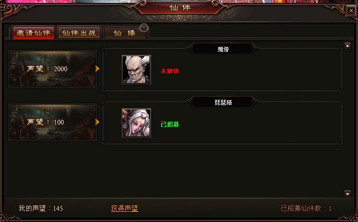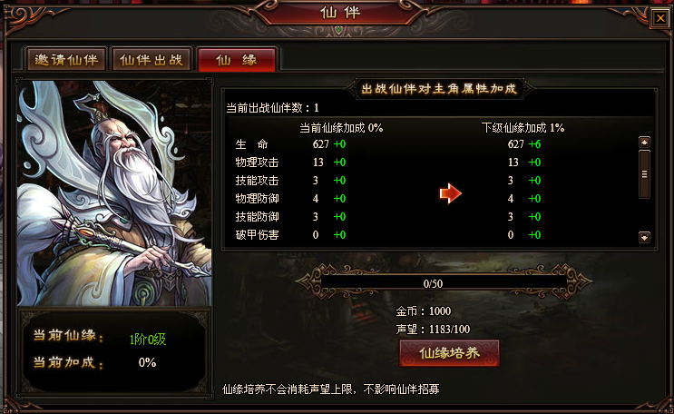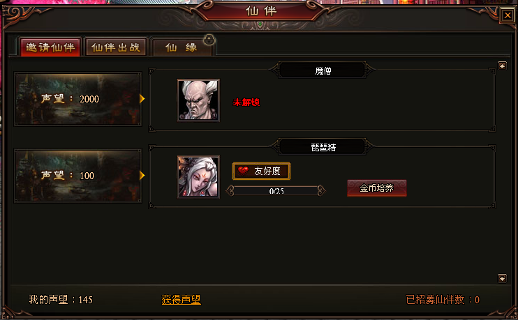 2.仙缘培养不会消耗声望上限,不影响仙伴招募。